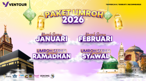 Wujudkan impian ibadah umroh bersama travel umroh terbaik dan tepercaya yang tidak hanya mengantarkan perjalanan, tetapi juga menghadirkan kenyamanan dan kepercayaan. Telah memberangkatkan lebih dari 13 ribu jamaah pada musim 1446H, Ventour Travel menghadirkan perjalanan umroh yang nyaman, aman, dan penuh keberkahan dengan pengalaman dan dedikasi tinggi serta akan terus memberikan layanan terbaik dan bimbingan profesional yang siap menemani dari awal hingga akhir.