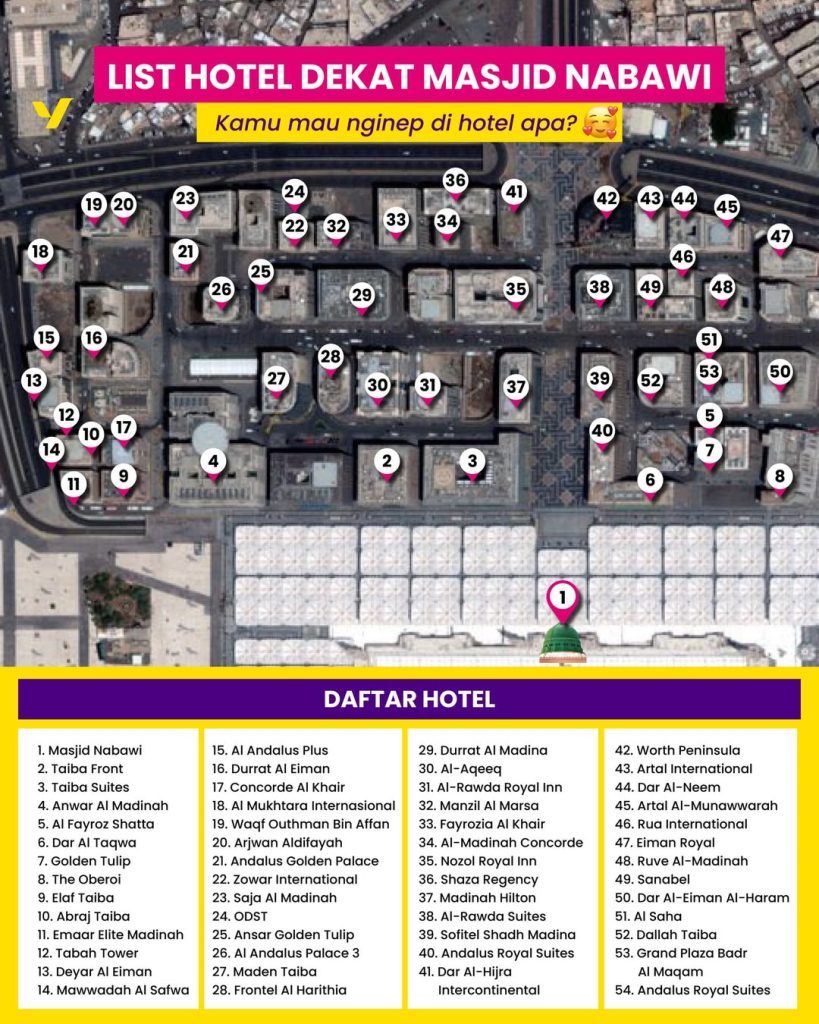 Dengan memilih hotel yang tepat, Sahabat bisa menghemat tenaga, lebih fokus beribadah, dan tidak perlu tergesa-gesa setiap kali adzan berkumandang. Karena itulah, mengetahui daftar hotel strategis di Makkah dan Madinah menjadi informasi penting sebelum berangkat umroh.