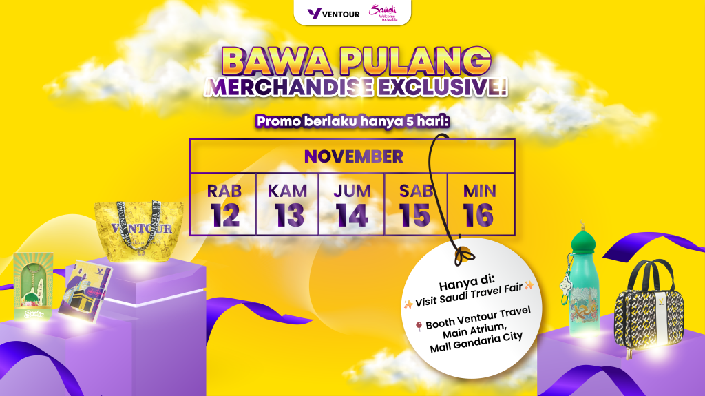 Buat sahabat yang ingin merasakan langsung keseruan event ini, jangan lupa mampir ke booth Ventour Travel di Main Atrium, Gandaria City Mall. Selain bisa konsultasi langsung dengan tim profesional Ventour, sahabat juga bisa daftar langsung paket Umroh dan berkesempatan mendapatkan free merchandise limited edition yang eksklusif hanya untuk pengunjung booth selama pameran berlangsung!